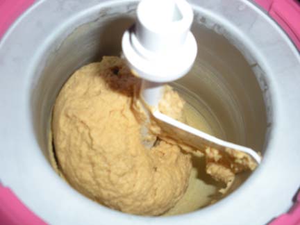 Next I put it into a ziploc bag, and into the freezer so it could get cold. It was still a little warm from the squash and would have taken forever to chill Donvier Ice Cream Maker. Once it was very cold, I emptied the mixture into the ice cream maker, and started to stir it. I was surprised that it set up very quickly, in about ten minutes.