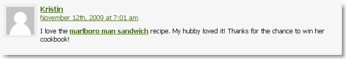 This post is in reference to the cookbook giveaway of a Pioneer Woman Cookbook signed personally by Ree Drummond.
