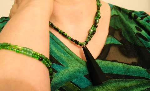 One day I was near an independent thrift store I've blogged about before, the Children's Angel Foundation Thrift and Boutique. I thought I would stop by just to see what they had. They have fairly reasonable prices, but they have this one section of the store that has some higher quality dresses and suits. I came across this gorgeous green dress. But it was twelve dollars. I rarely pay that much for clothing from a thrift store and I decided I couldn't buy it. But it was so beautiful, and I thought it might match the necklace and bracelet set perfectly.
