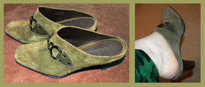 Also while at Savers, I saw a neat pair of Aerosoles Women's Cinch Worm Stacked Heel Mule in olive green suede . They fit me perfectly, but I didn't think the color would match the dress. I decided not to buy them because I didn't think they would work, and I don't like to buy clothing just because I think it looks neat. I really want to love the clothes and shoes that I buy and get use from them. Not wear them once and there they hang in the closet.