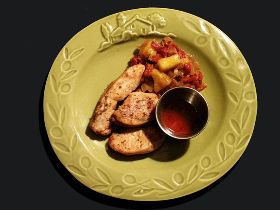 One of my favorite meals is butter fried chicken. Very simple: just cut chicken breast into strips, melt butter in a skillet and fry until firm and nicely browned on both sides. The other night I had a pineapple just begging to be used, so I concocted a pineapple chutney and added a splash of TABASCO® Original Red on the side to bring out the flavor. It really hit the spot and satisfied my cravings.