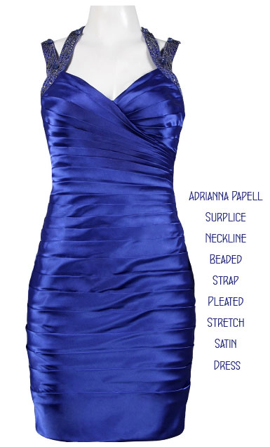 Adrianna Papell Surplice Neckline Beaded Strap Pleated Stretch Royal Blue Sheath Satin Dress