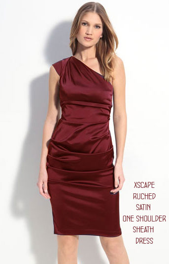 Xscape Ruched Satin One Shoulder Wine Red Sheath Dress
